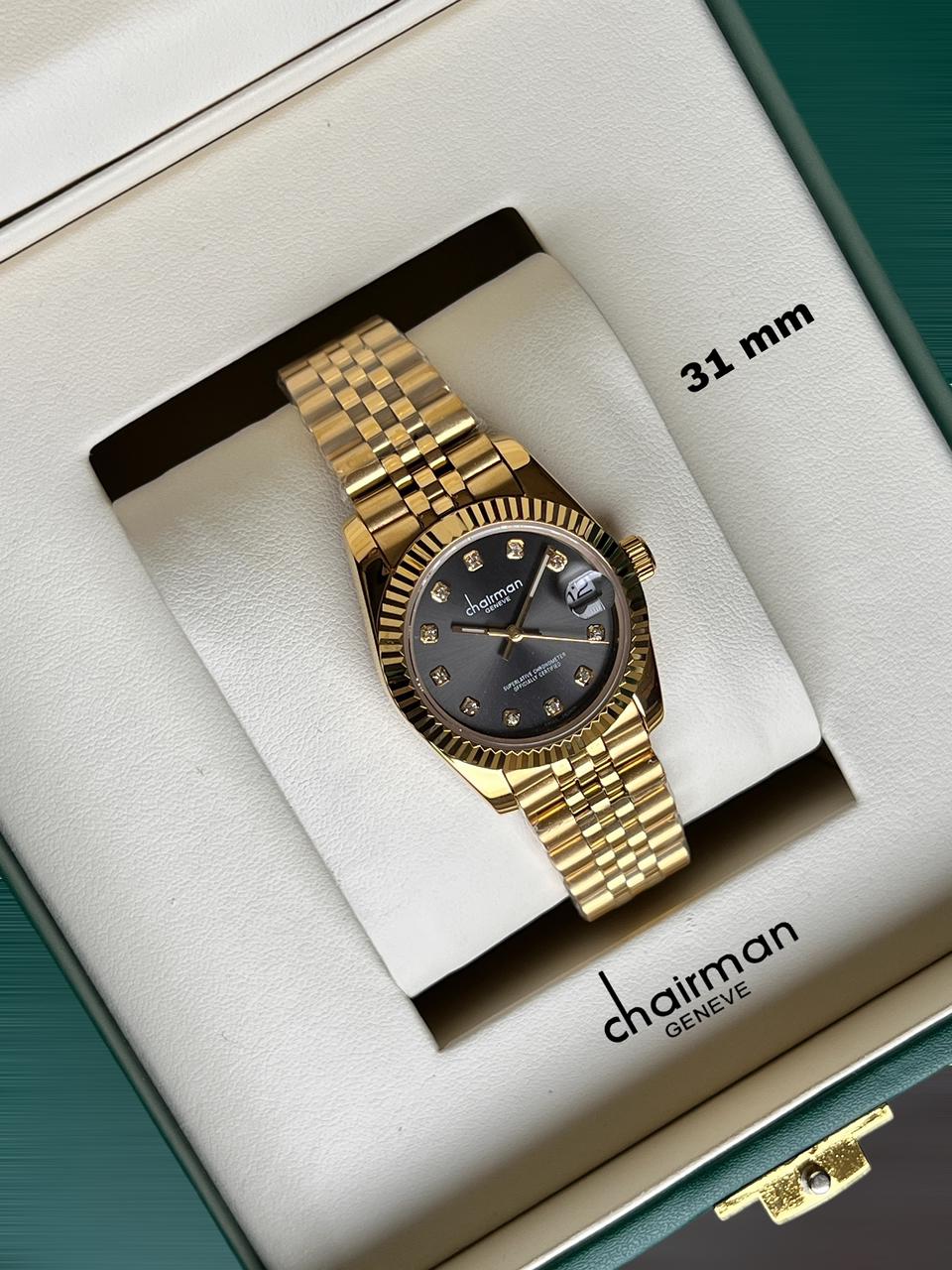 Chairman Geneve Golden Dated Dial Golden Chain Ladies Watch