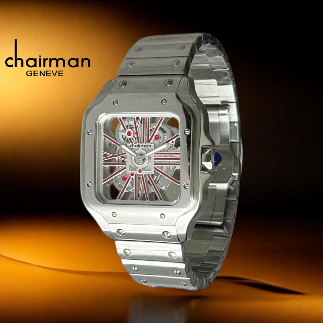 Red Silver Mechanical Dial Silver Strap Chairman Geneve Ladies Watch