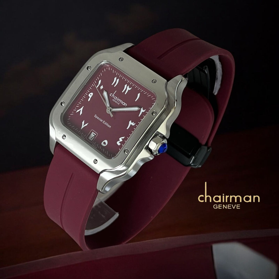 Special Edition Chairman Geneve Dated Arabic Maroon Dial Maroon Strap Ladies Watch