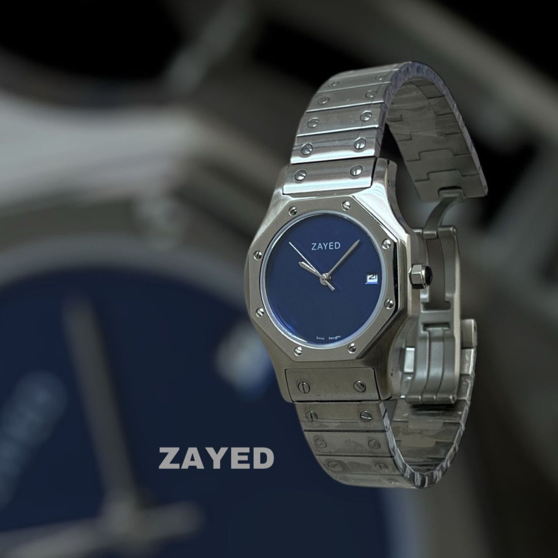 Navy Blue Dated Dial Zayed Silver Chain Gents Watch