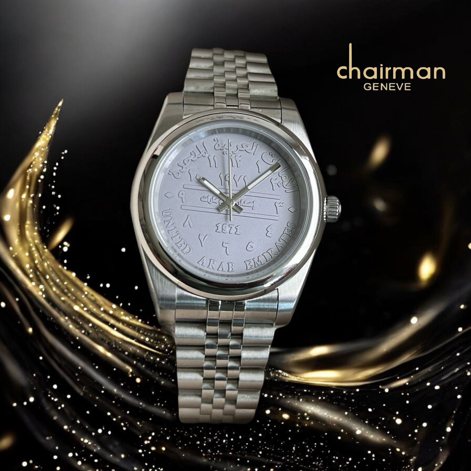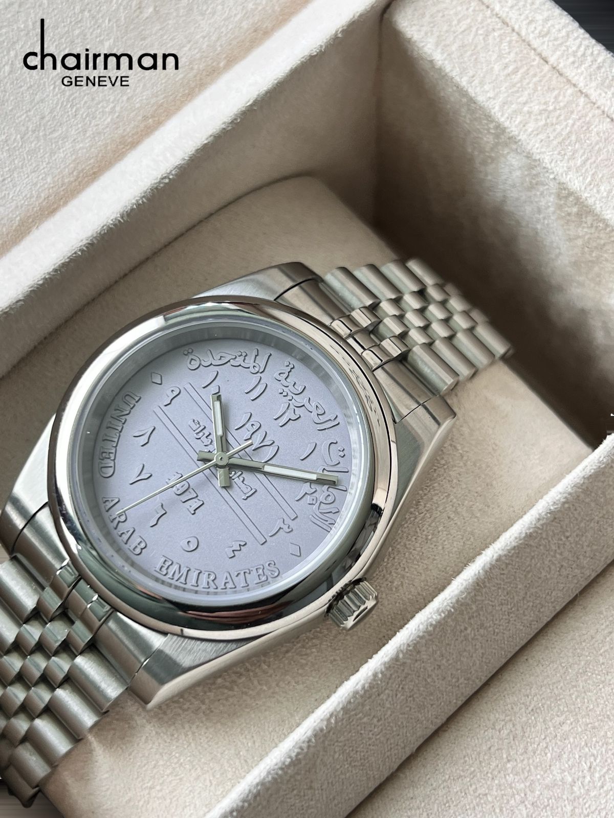 Elevate your style with the 1971 United Arab Emirates Silver Chain Arabic Dial Luxury Watch. This sophisticated timepiece boasts a sleek silver chain and an elegant Arabic dial, offering both fashion and functionality. The perfect addition to any outfit, this luxury watch is a must-have for any fashion-forward individual.