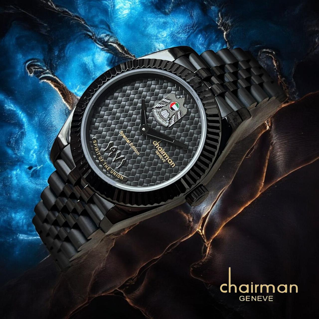Abu Dhabi Flag Embed Watch Chairman Geneve Black Dial Swiss Made Black Chain Strap