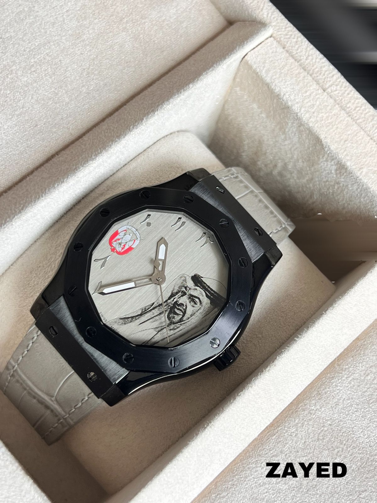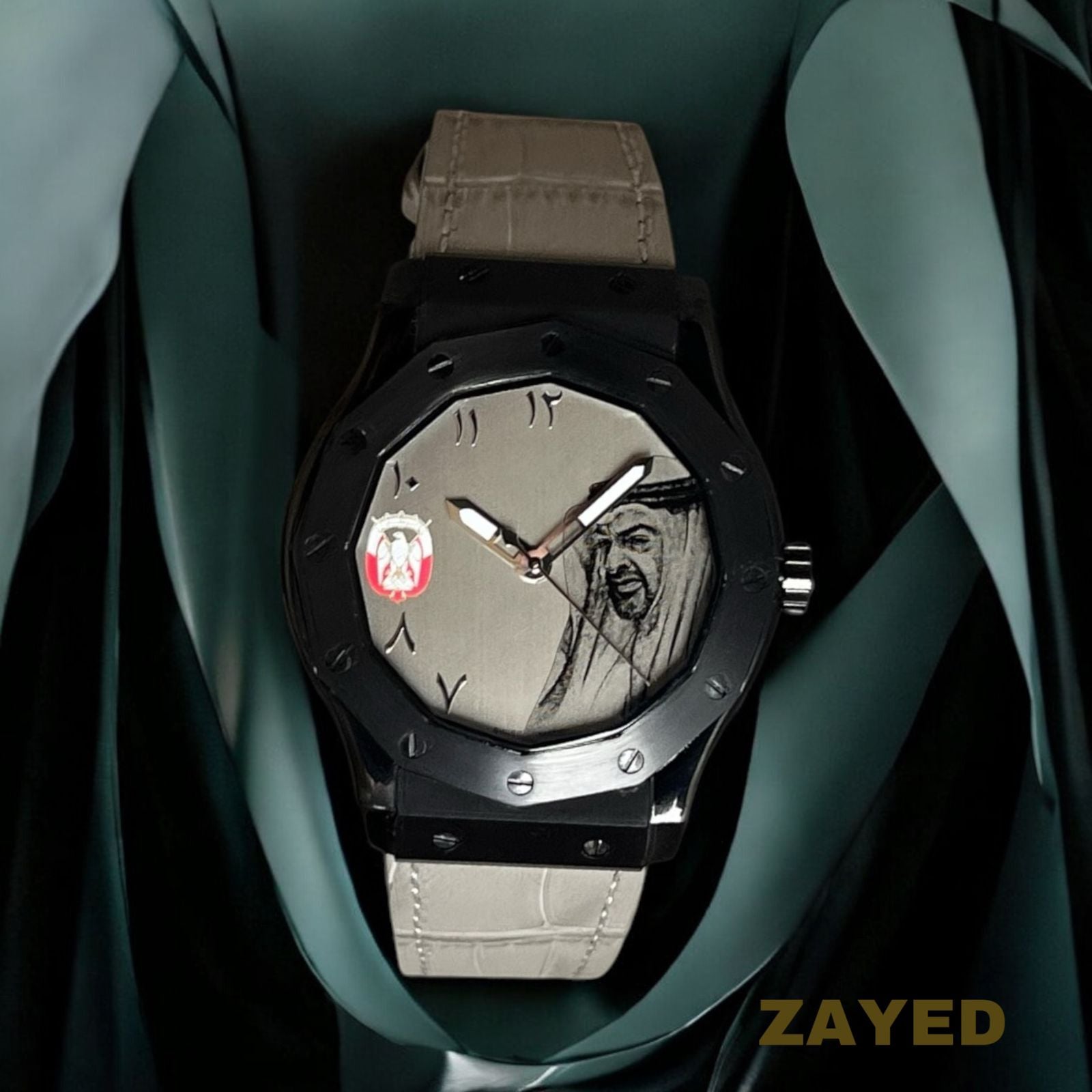 Elevate your style with our ABU DHABI Old Flag Arabic Dial Creme Color Leather Watch. Showcasing a vintage-inspired Arabic dial and a luxuriously smooth leather strap, this watch is perfect for any occasion. Make a bold fashion statement while paying homage to ABU DHABI's rich history.
