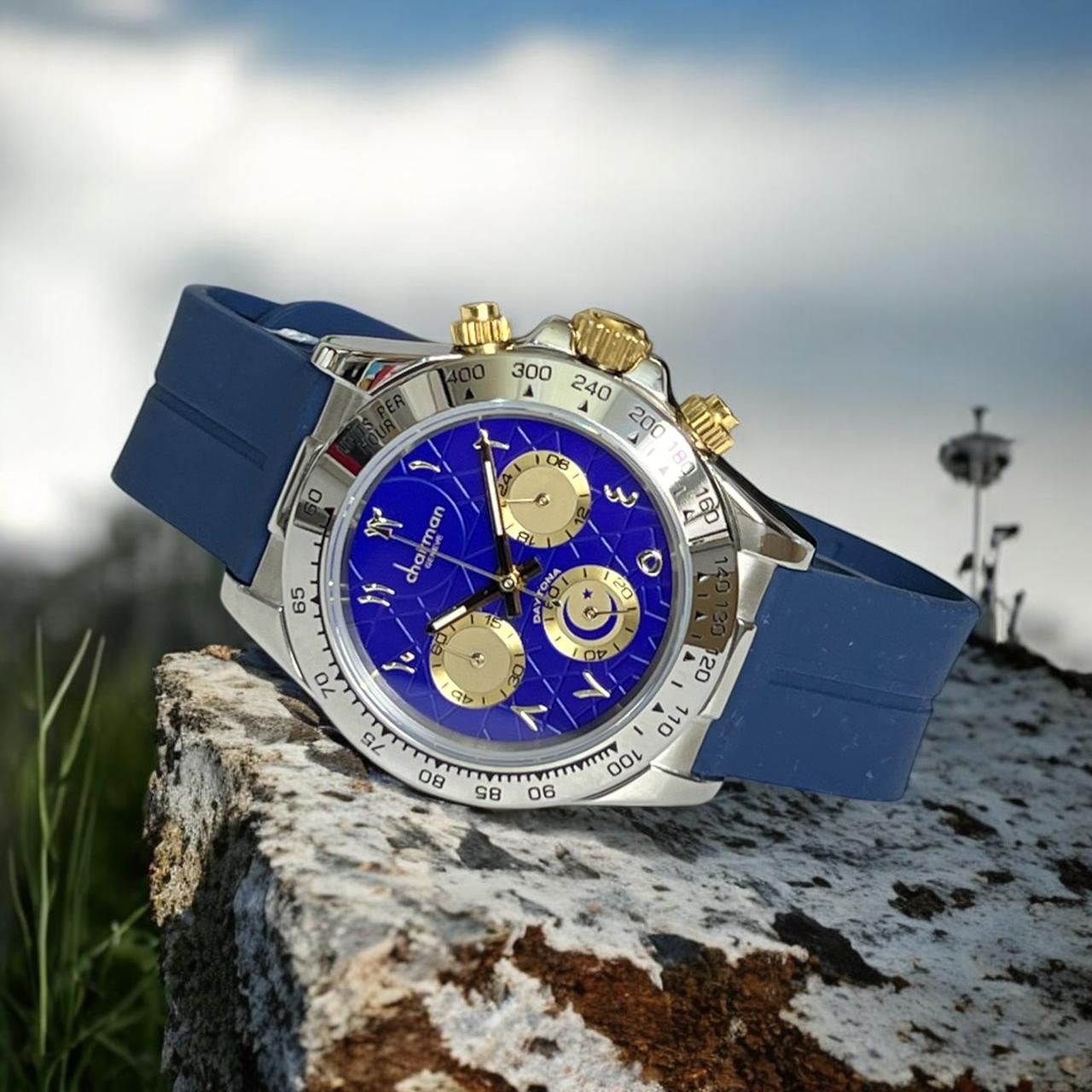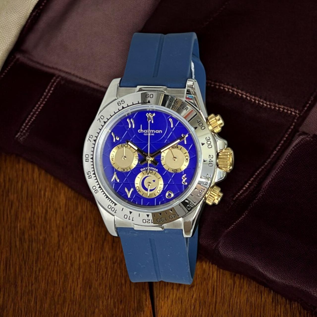 Arabic Blue Dial Blue Strap Chairman Geneve Unisex Watch