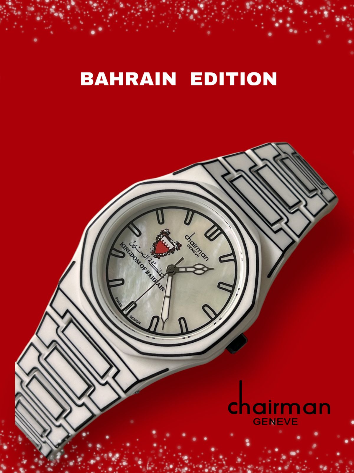 Introducing the BAHRAIN Edition Chairman Geneve Poly Carbon White Gents Watch. Crafted with high-quality materials, this watch offers durability and style. Its sleek white design and precise timekeeping make it perfect for any occasion. Show off your unique sense of fashion with this exclusive edition watch.