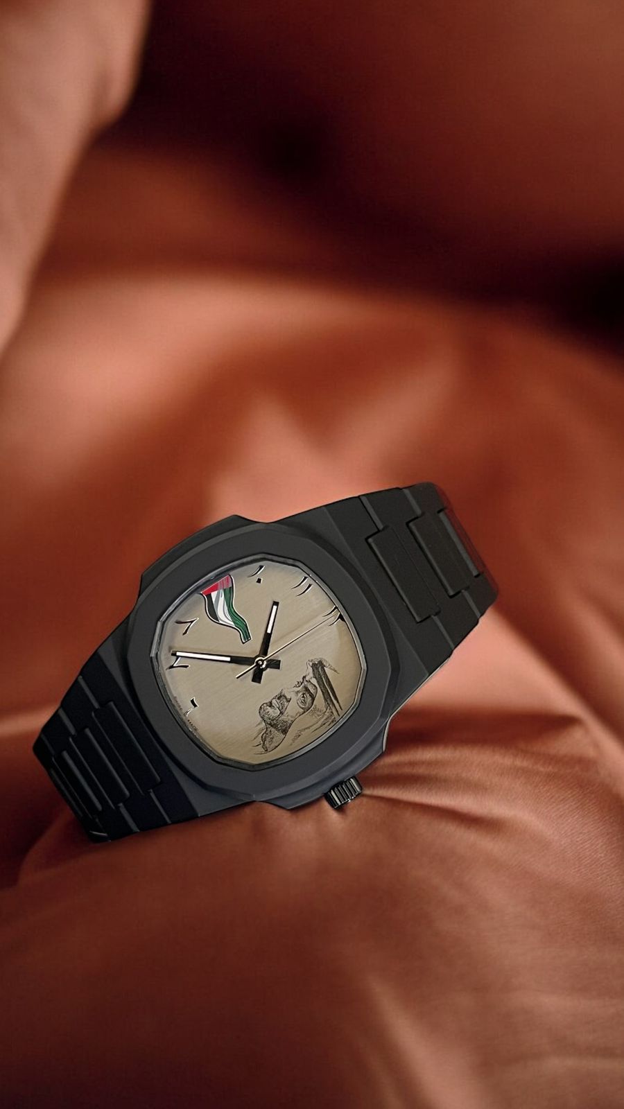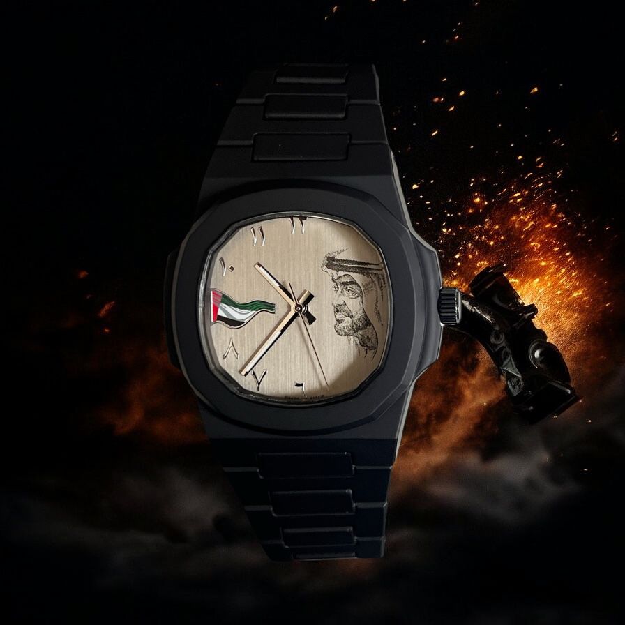 Showcase your national pride with this elegant gents watch featuring a distinctive beige Arabic dial and UAE Sheikh Flag photo. The sophisticated black chain complements the patriotic design, making it both a stylish accessory and a meaningful tribute to Emirati heritage. Perfect for National Day celebrations or everyday wear for the distinguished gentleman.