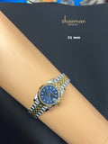Stay punctual and stylish with the Blue Dated Dial Chairman Geneve Silver Gold Chain Gents Watch. This classic timepiece features a blue dial with a date function and is elegantly designed with a silver and gold chain. Perfect for any occasion, this watch is sure to impress.