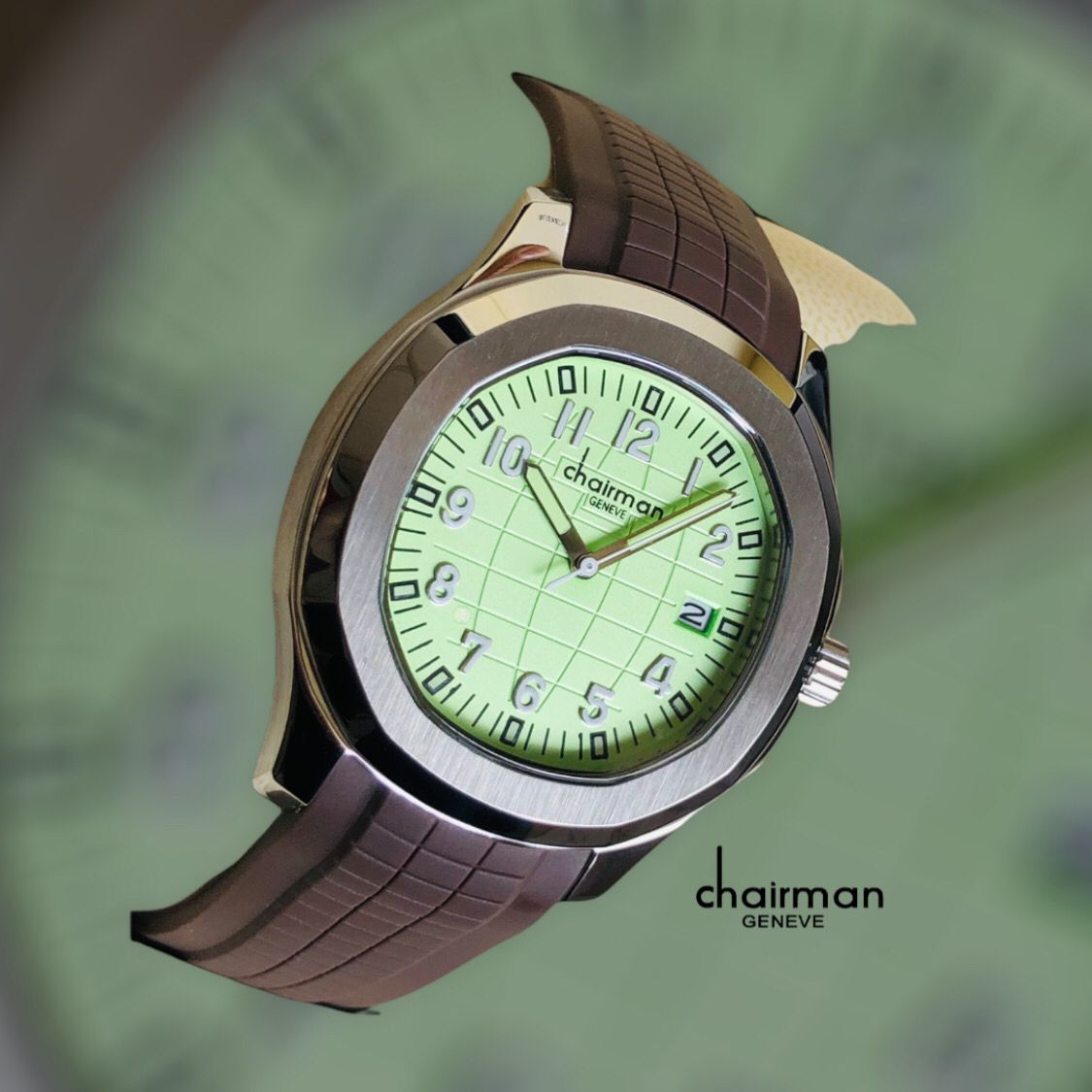 Chairman Brown Strap Quartz Watch with Baby Green Dial For Men