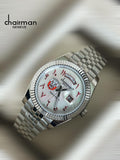 Step into luxury with the Chairman Geneve Arabic Dial Dated Silver Strap Men's Watch. The silver Arabic dial and date feature add a touch of refinement to your wardrobe. Keep up with your busy schedule and stand out with this stunning timepiece.