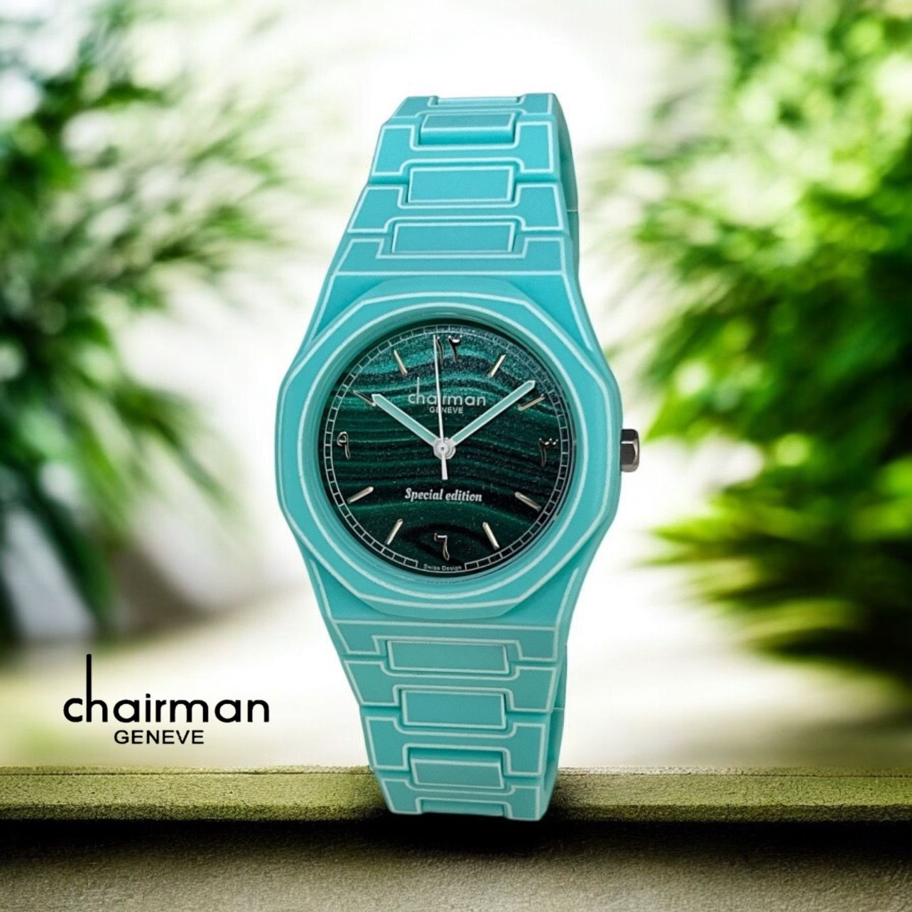 Elevate your wrist game with the Chairman Geneve Arabic Green Wave Dial watch. Featuring a stunning green wave dial with Arabic numerals and a sophisticated poly carbon construction, this timepiece combines luxury with durability. Perfect for the modern gentleman who appreciates distinctive style and precision craftsmanship. Make a statement wherever you go with this exclusive accessory.