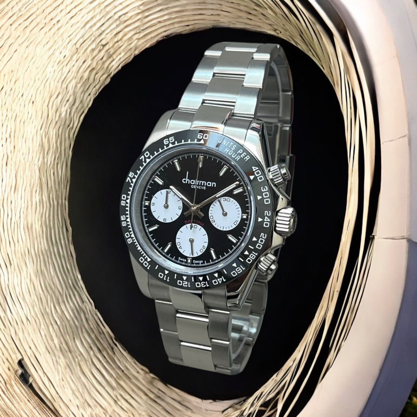 Chairman Geneve Black Dial Steel Strap Men's Watch