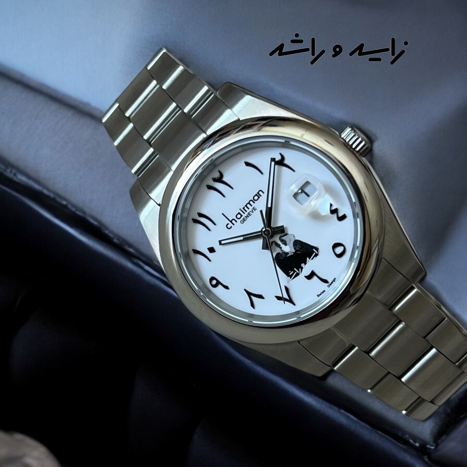 Chairman Geneve Dated Arabic White Dial Silver Strap Gents Watch