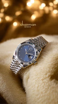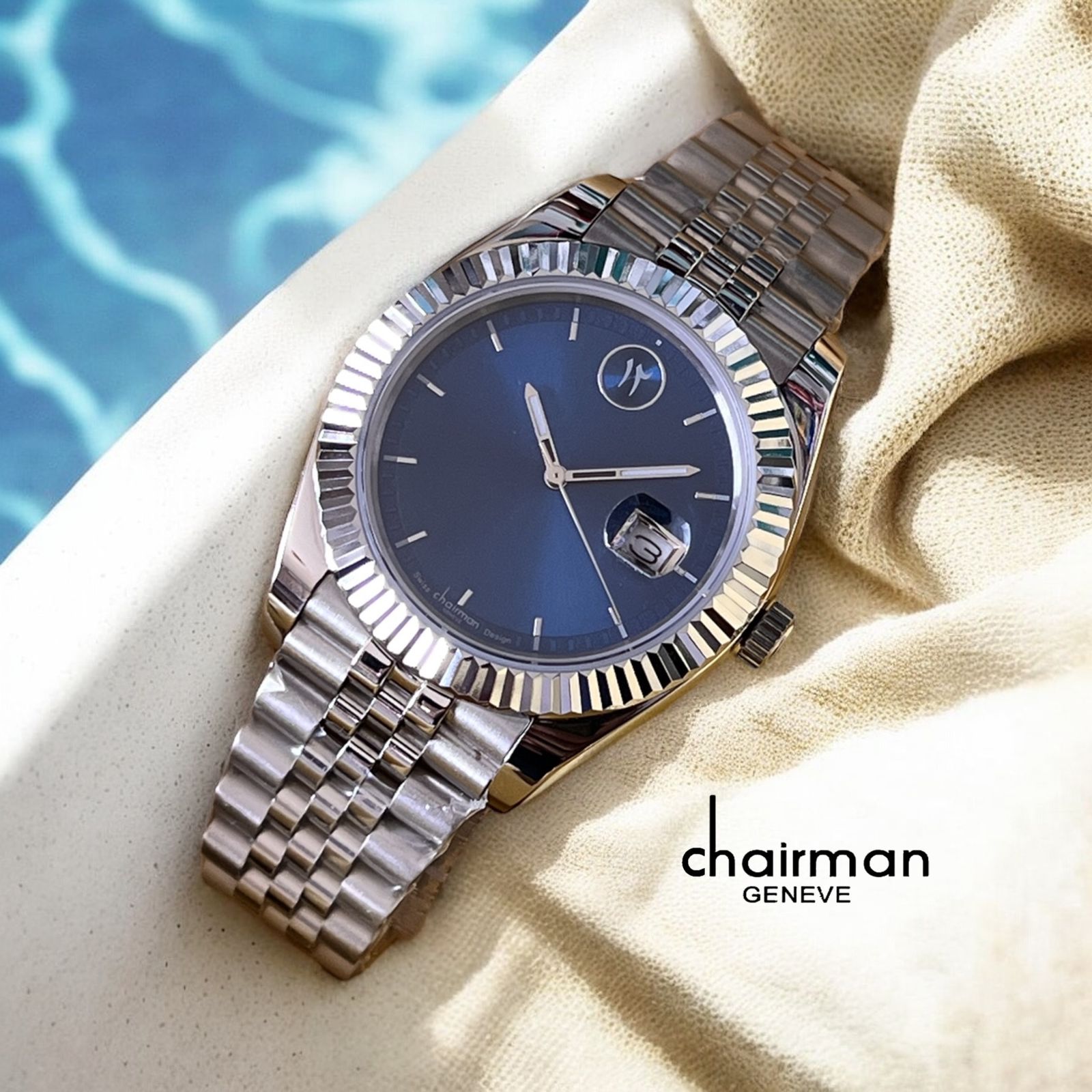 Elevate your style with the Chairman Geneve Gents Watch, featuring a striking blue dial and a sleek silver chain. Designed for the modern gentleman, this timepiece combines classic elegance with precise dated functionality, making it perfect for both everyday wear and special occasions. Its refined design ensures you stay punctual and polished wherever you go.