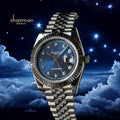 Chairman Geneve Dated Blue Stone Dial Silver Chain Gents Watch