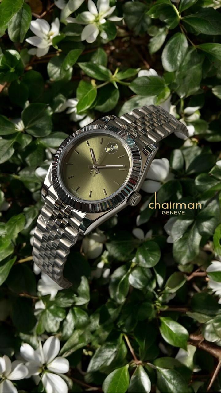 Elevate your style with the Chairman Geneve Gents Watch, featuring a sophisticated olive green dial and sleek silver chain. This timepiece combines luxury with functionality, offering date display for practical elegance. Perfect for the modern gentleman who appreciates refined craftsmanship and distinctive design. A statement accessory that transitions effortlessly from boardroom to evening events.