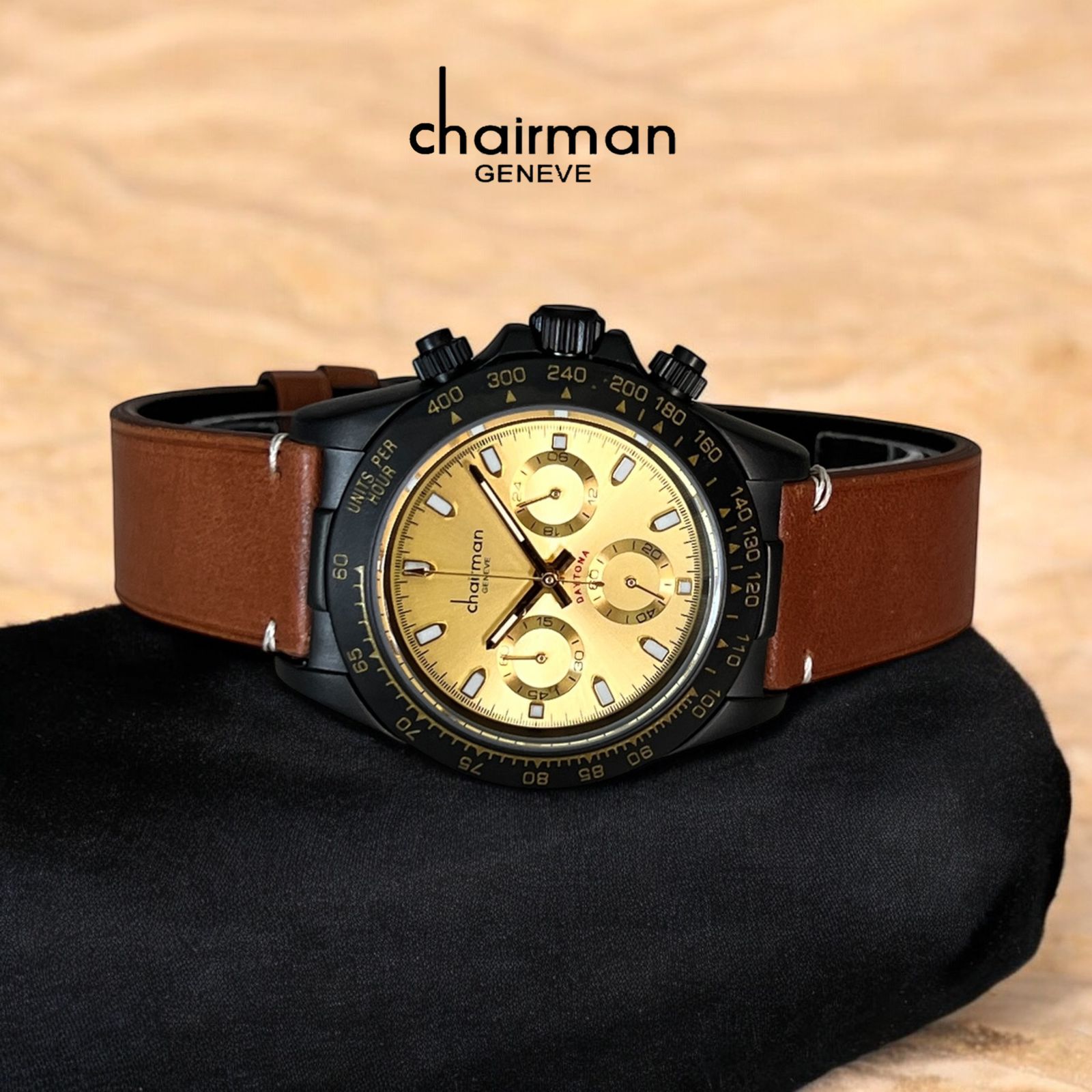 Elevate your style with the Chairman Geneve Daytona Mechanical Watch. Featuring a striking golden dial paired with a classic brown strap, this timepiece blends timeless elegance with precise mechanical movement. Designed for gentlemen who appreciate craftsmanship and sophistication, it offers reliable performance while enhancing any outfit with a touch of luxury. Perfect for both formal occasions and everyday wear.
