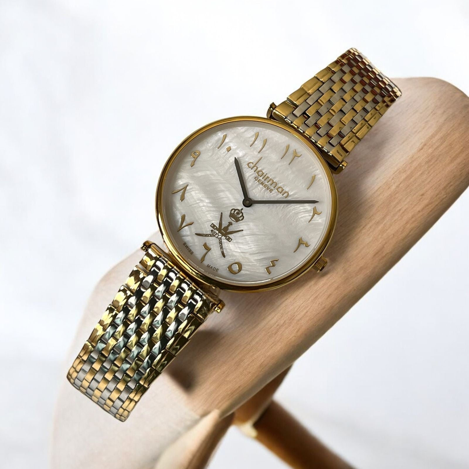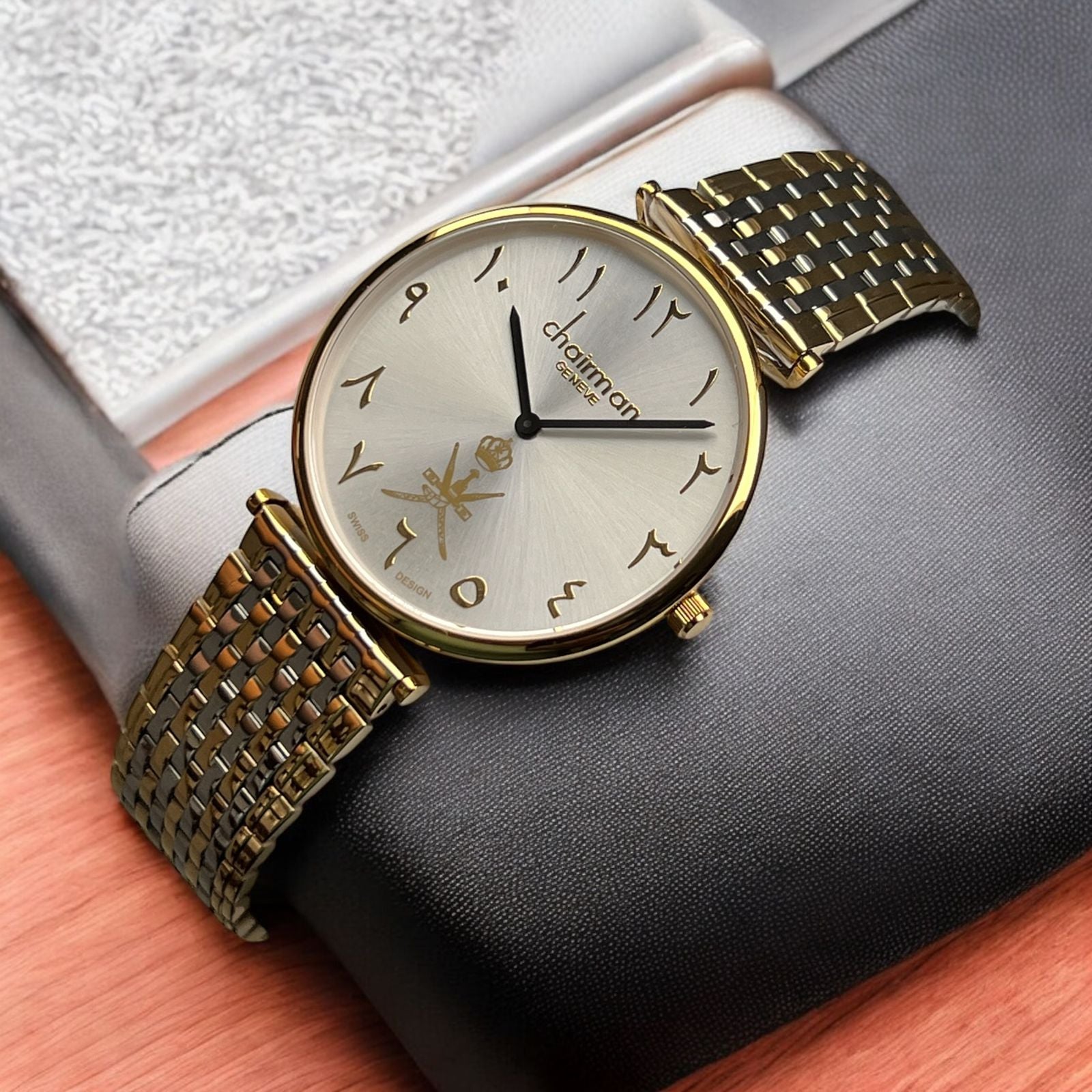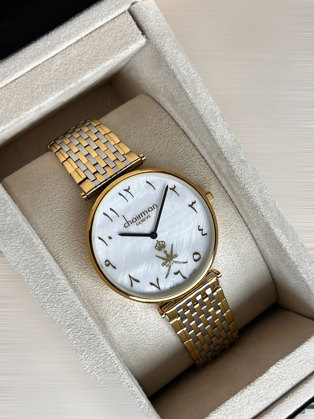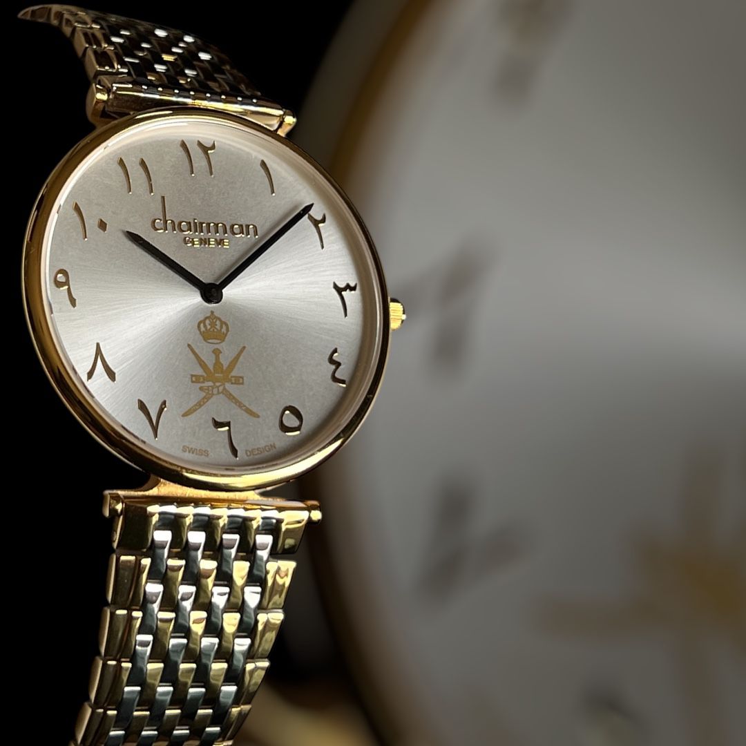 Chairman Geneve OMAN Emblem Arabic White Dial Silver And Gold Chain Gents Watch
