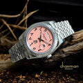 Chairman Geneve Pink Dated Arabic Dial Silver Strap Gents Watch