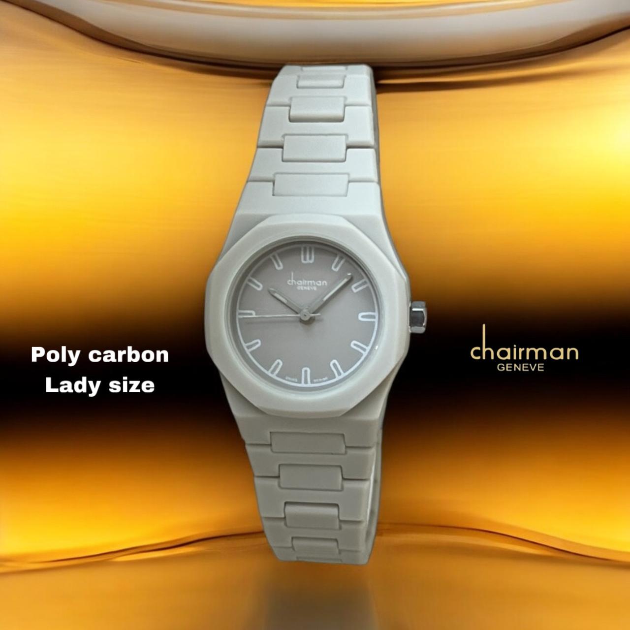Add elegance to your wardrobe with the Chairman Geneve Poly Carbon Lady Size Baby Grey Watch. With its grey color and durable Poly Carbon material, this watch is perfect for everyday wear and special occasions. Stay on time and in style with this stunning and practical timepiece.