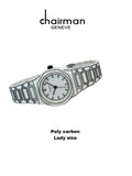 Elevate your style with the sleek and sophisticated Chairman Geneve Poly Carbon Lady Size Black And White Watch. With its durable poly carbon material and elegant black and white design, this watch is perfect for any occasion. Make a statement with every tick of the clock.