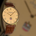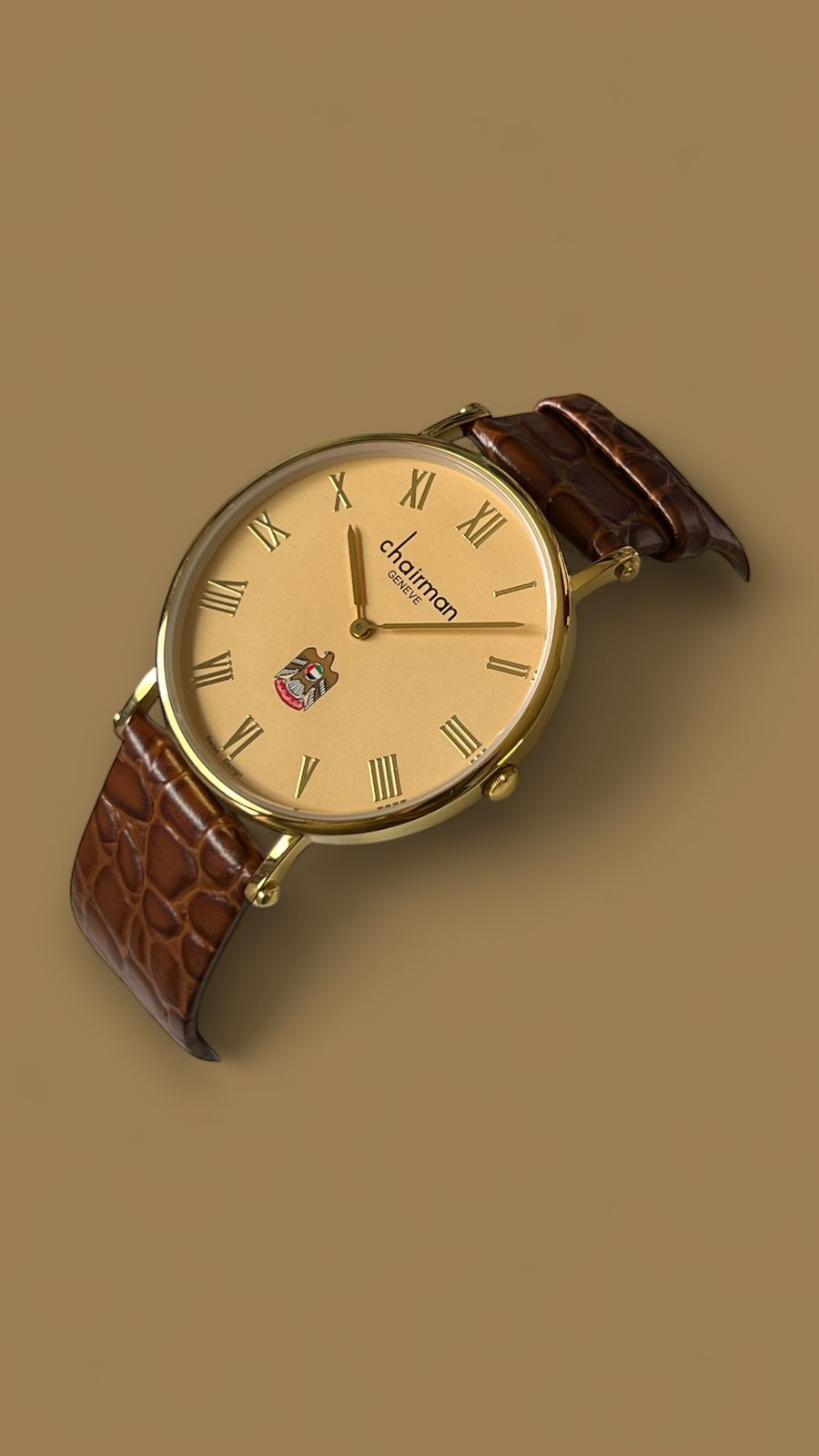 Chairman Geneve Roman Numeral Beige Dial UAE Emblem Vintage Brown Strap Gents Watch