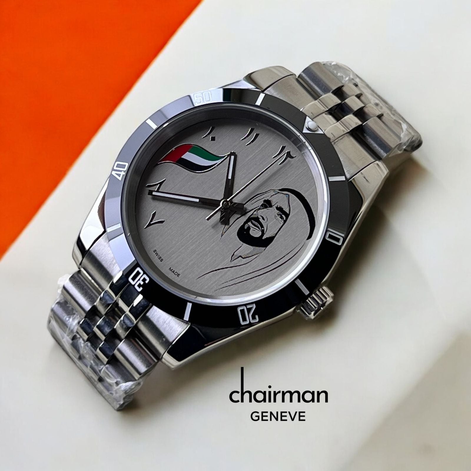 Chairman Geneve Swiss Made Arabic Dial UAE Flag Silver Strap