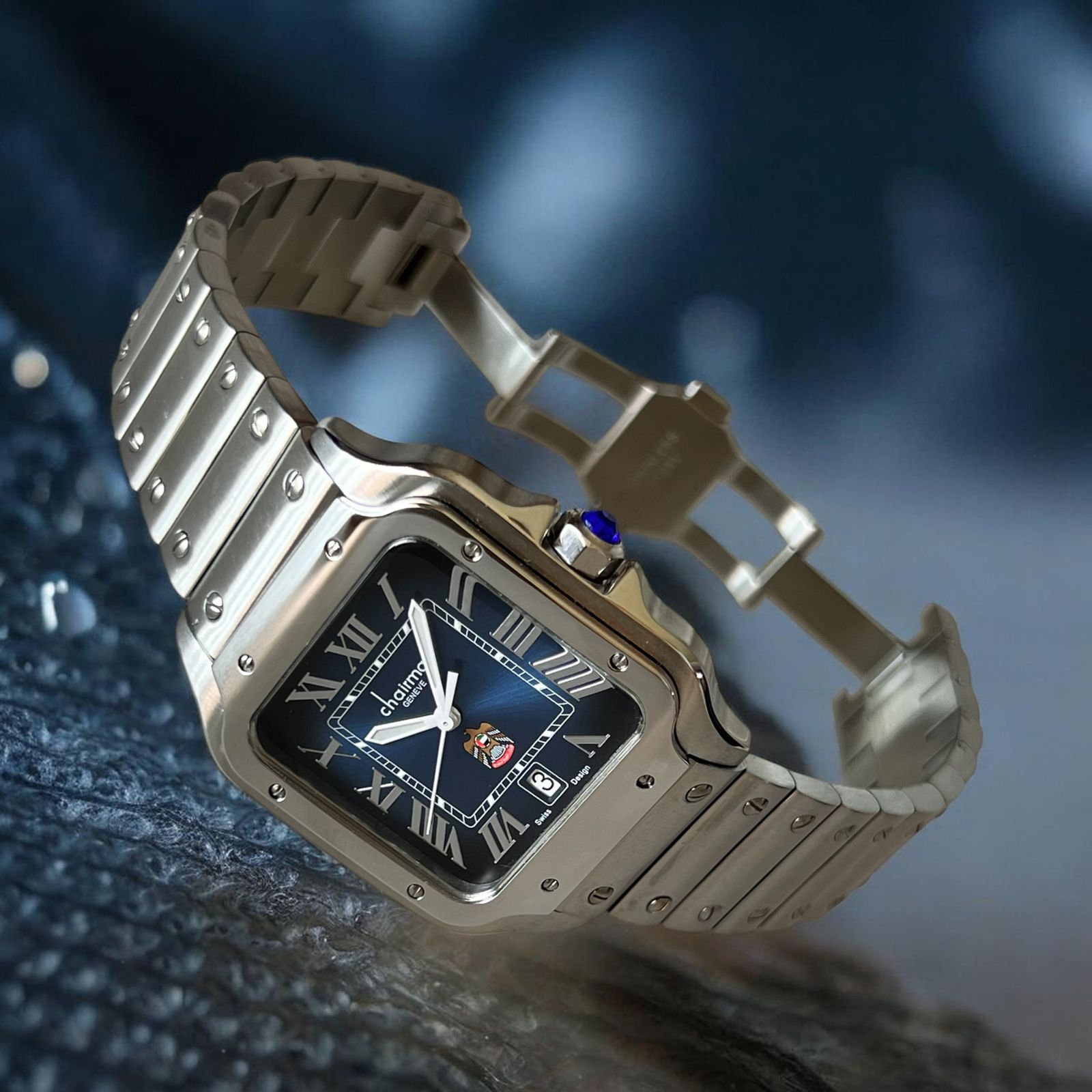 Elevate your wrist with the Chairman Geneve UAE Emblem watch, a sophisticated timepiece designed for the modern gentleman. Featuring a striking blue dial with Roman numerals and a dated window, this watch combines classic elegance with contemporary style. The polished silver chain bracelet offers comfort and durability, while the precision movement ensures reliable timekeeping. Perfect for both formal occasions and everyday wear, this gents watch makes a distinguished statement with its UAE emblem detailing. A timeless accessory that reflects refined taste and attention to detail.