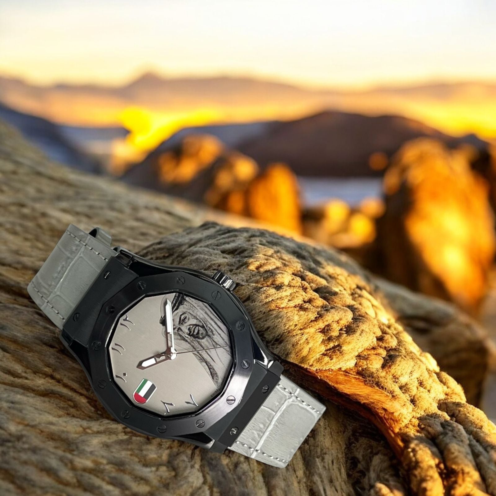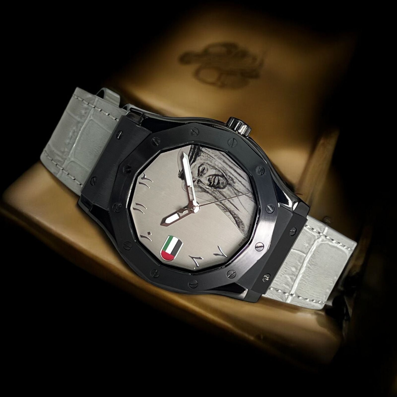 Chairman Geneve UAE Flag Sheik Arabic Grey Dial Grey Strap Gents Watch