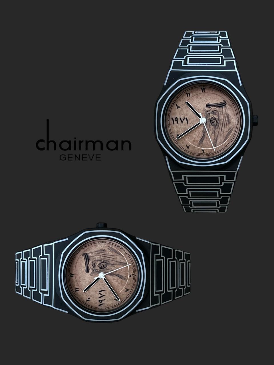 Chairman Geneve UAE Sheik Photo Arabic Brown Dial Black And White Watch