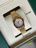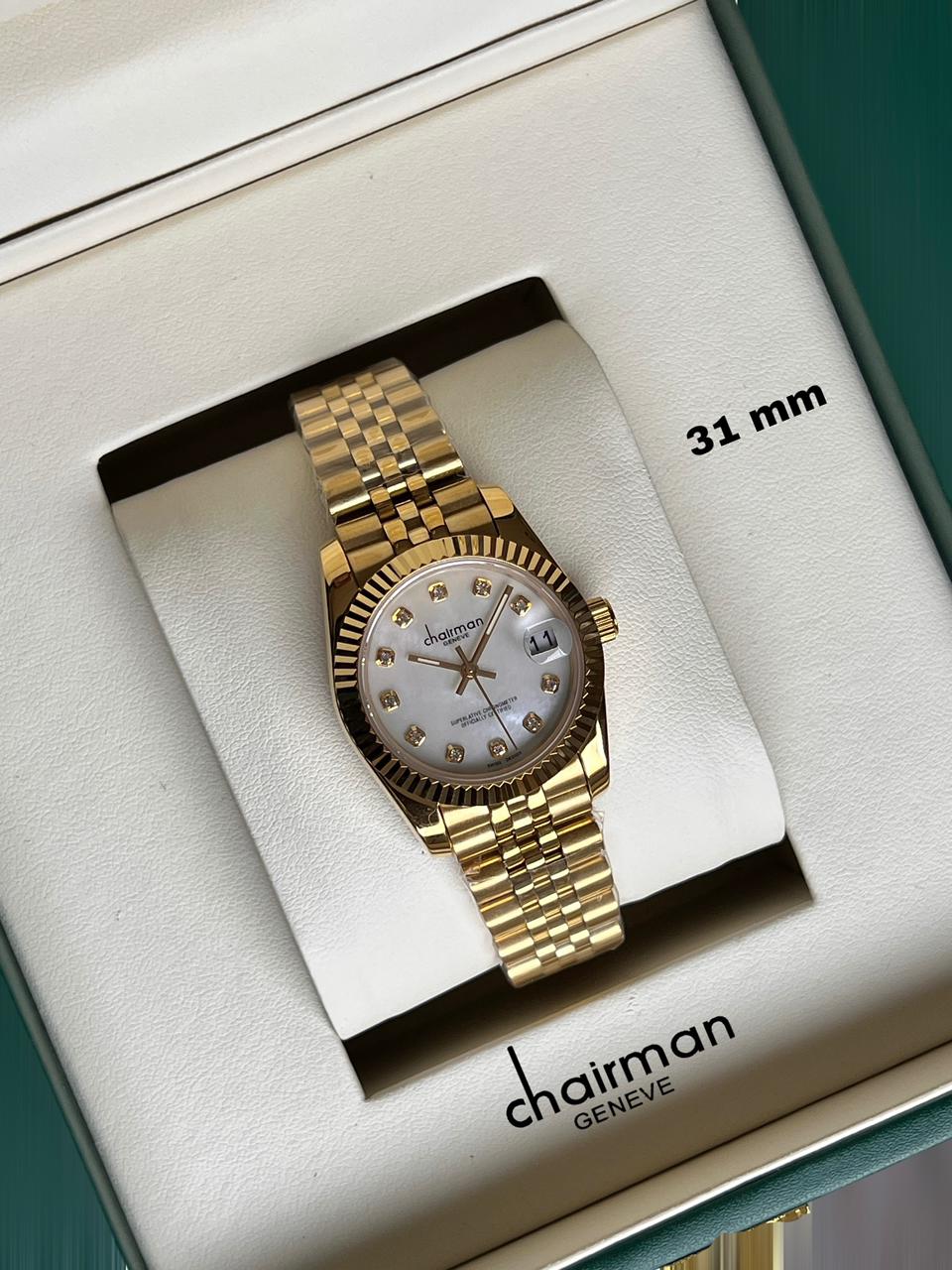 Chairman Geneve White Dated Stone Dial Golden Chain Ladies Watch