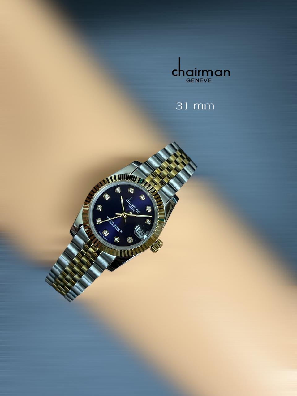 Chairman Gents Dated Blue Dial Silver And Gold Strap Gents Watch