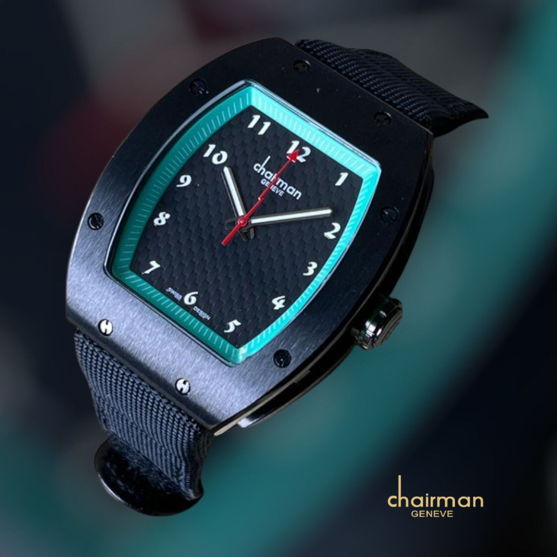 Chairman Metallic Black Strap Quartz Black and Baby Blue Dial Men's Watch