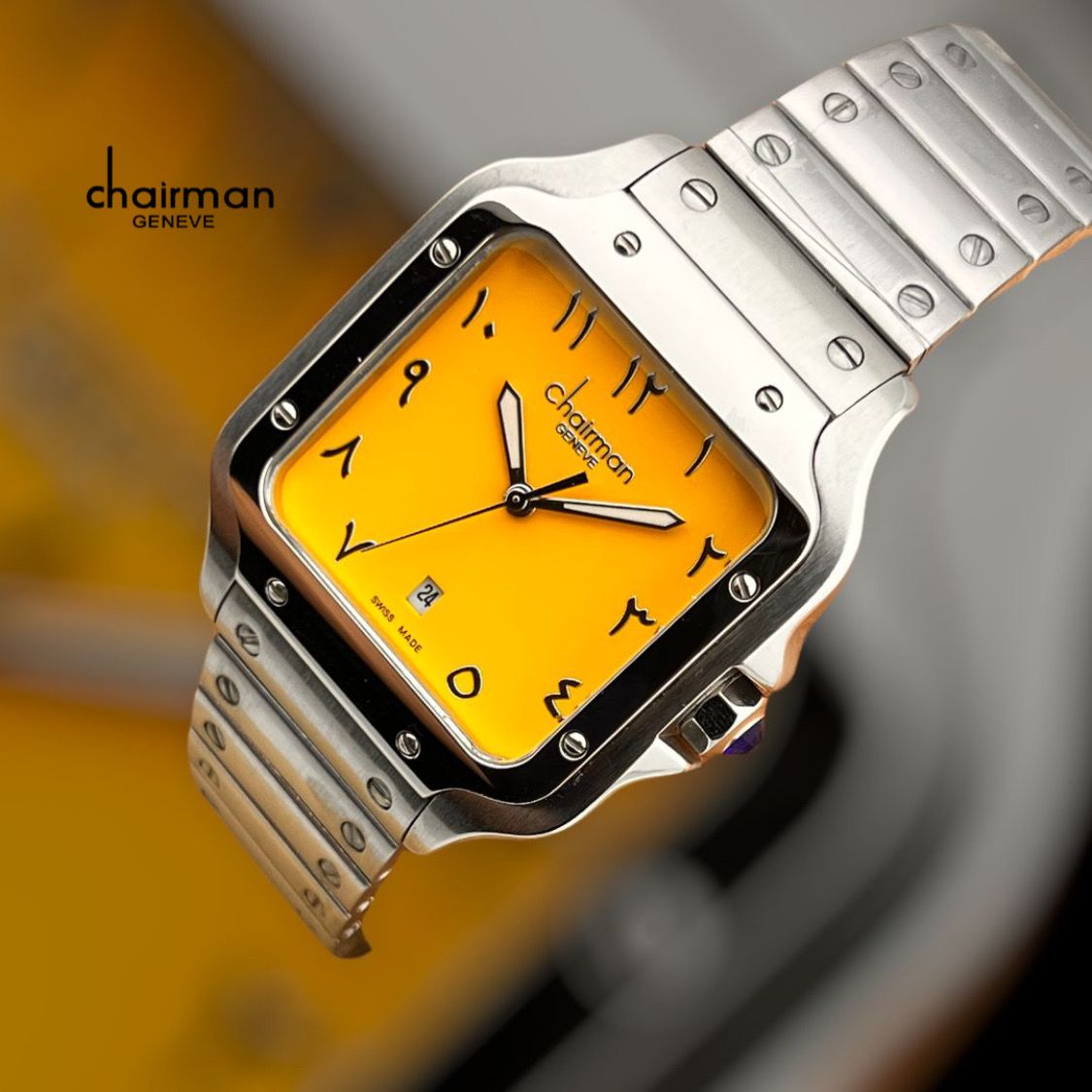 Chairman Stainless Steel Quartz Arabic Analogue Watch with Yellow Square Dial