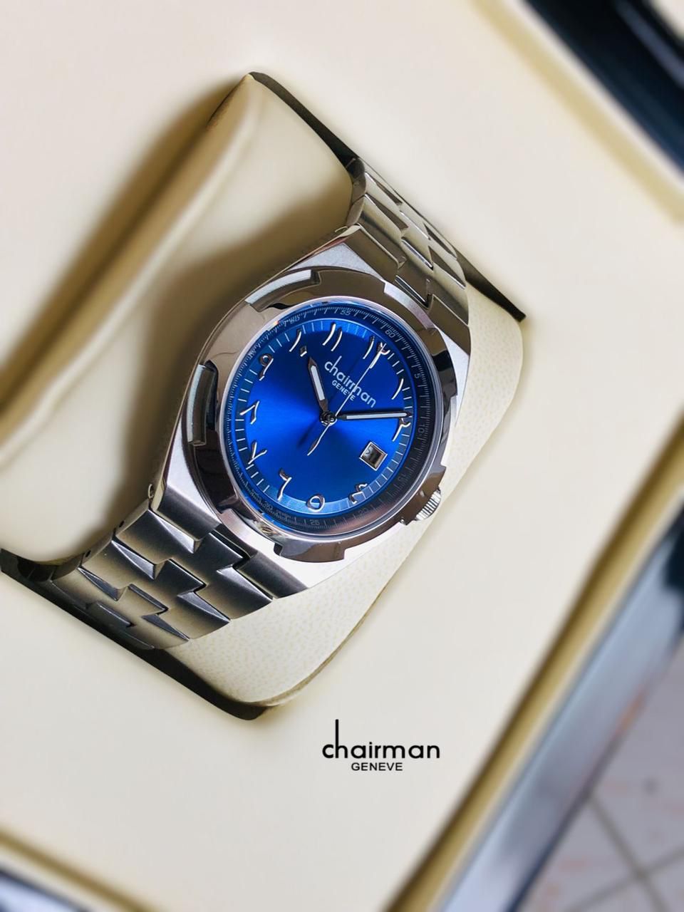 Chairman Stainless Steel Quartz Arabic Watch with Blue Dial For Men