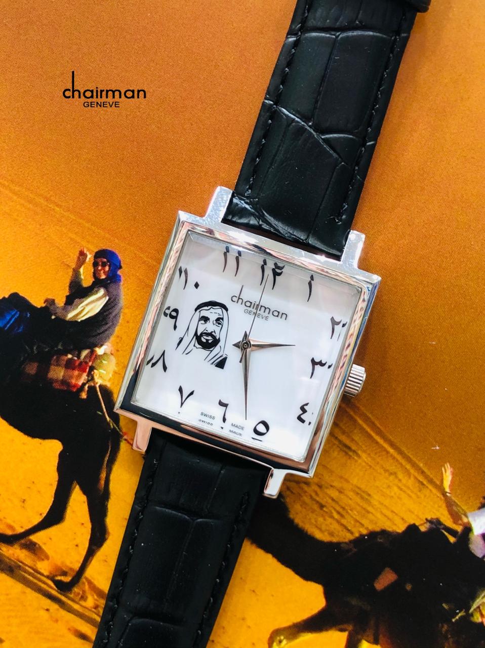 Chairman White Arabic Dial Silver Frame And Black Strap Men's Watch