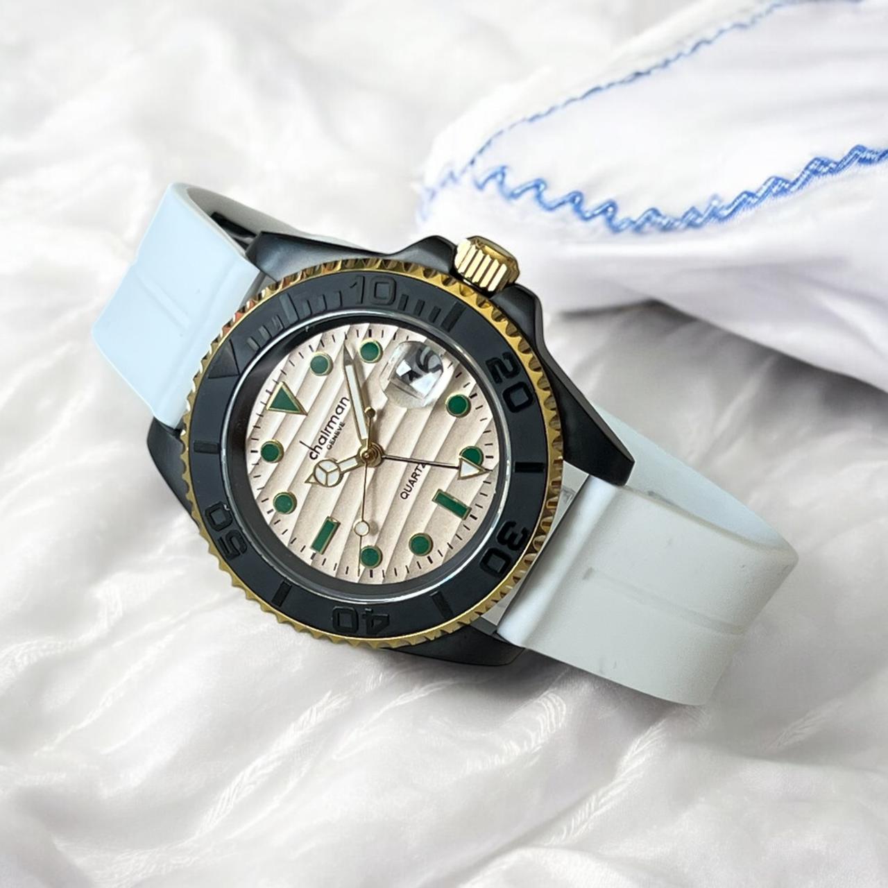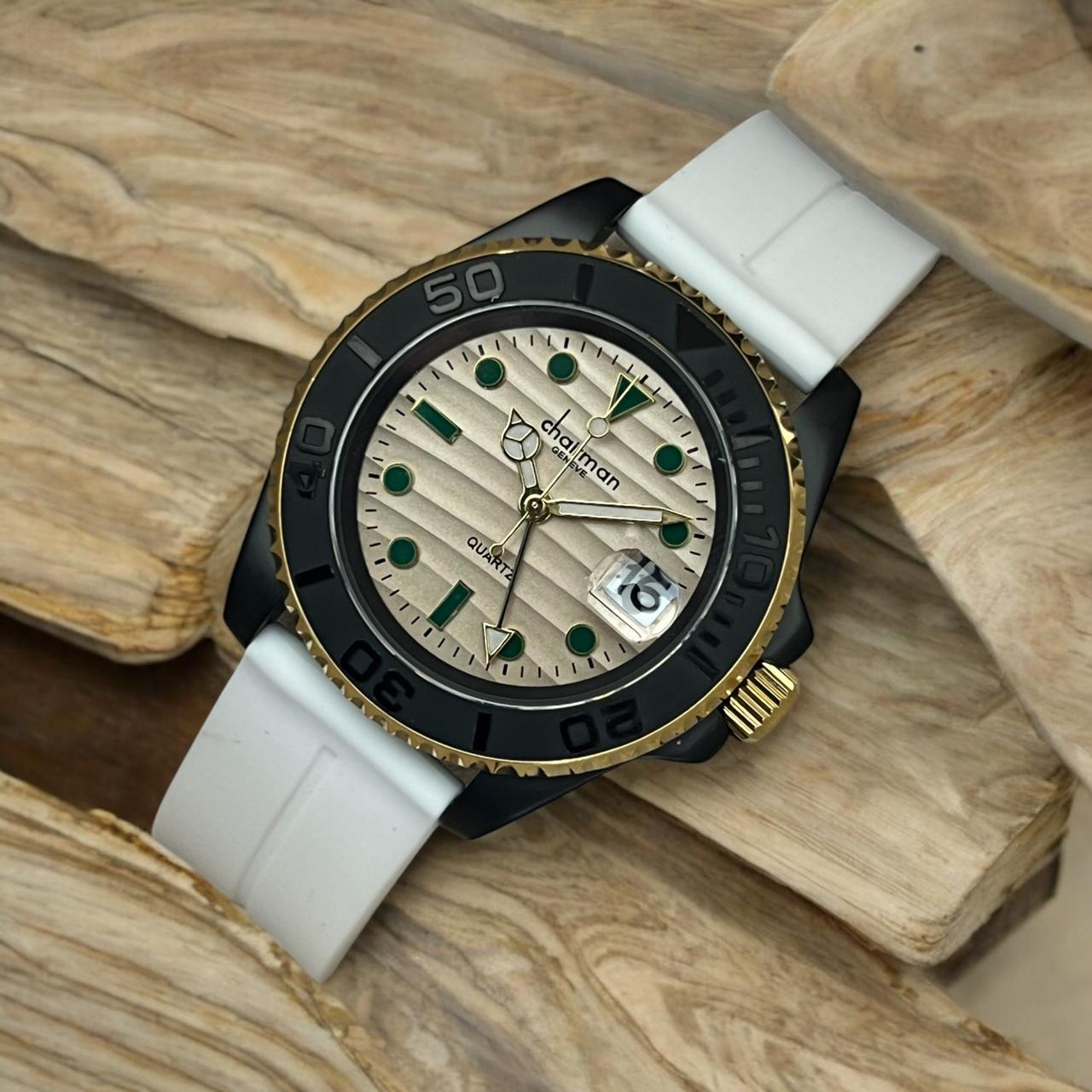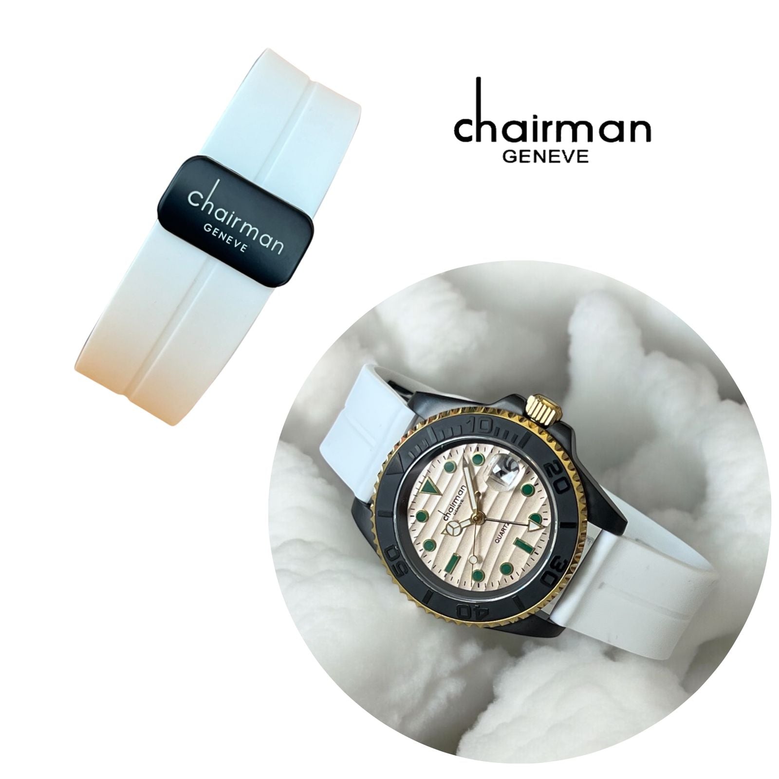 Creme Dated Dial Chairman Geneve White Strap Unisex Watch