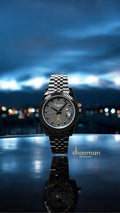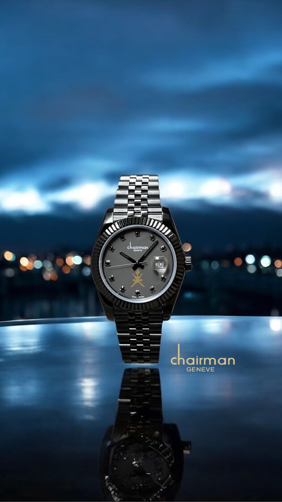 Experience timeless elegance with the OMAN Emblem Chairman Geneve watch. Featuring a sleek black dial and matching black chain, this gents' timepiece combines classic style with modern sophistication. The dated display adds practical functionality, making it perfect for everyday wear or special occasions. Elevate your look with a watch that embodies both luxury and precision.