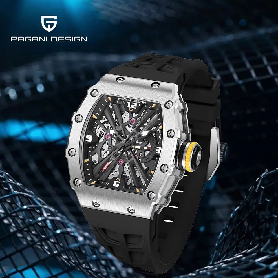PAGANI DESIGN Quartz Watches Stainless Steel Waterproof Wrist Watch for Men with Black Silicone Watchband