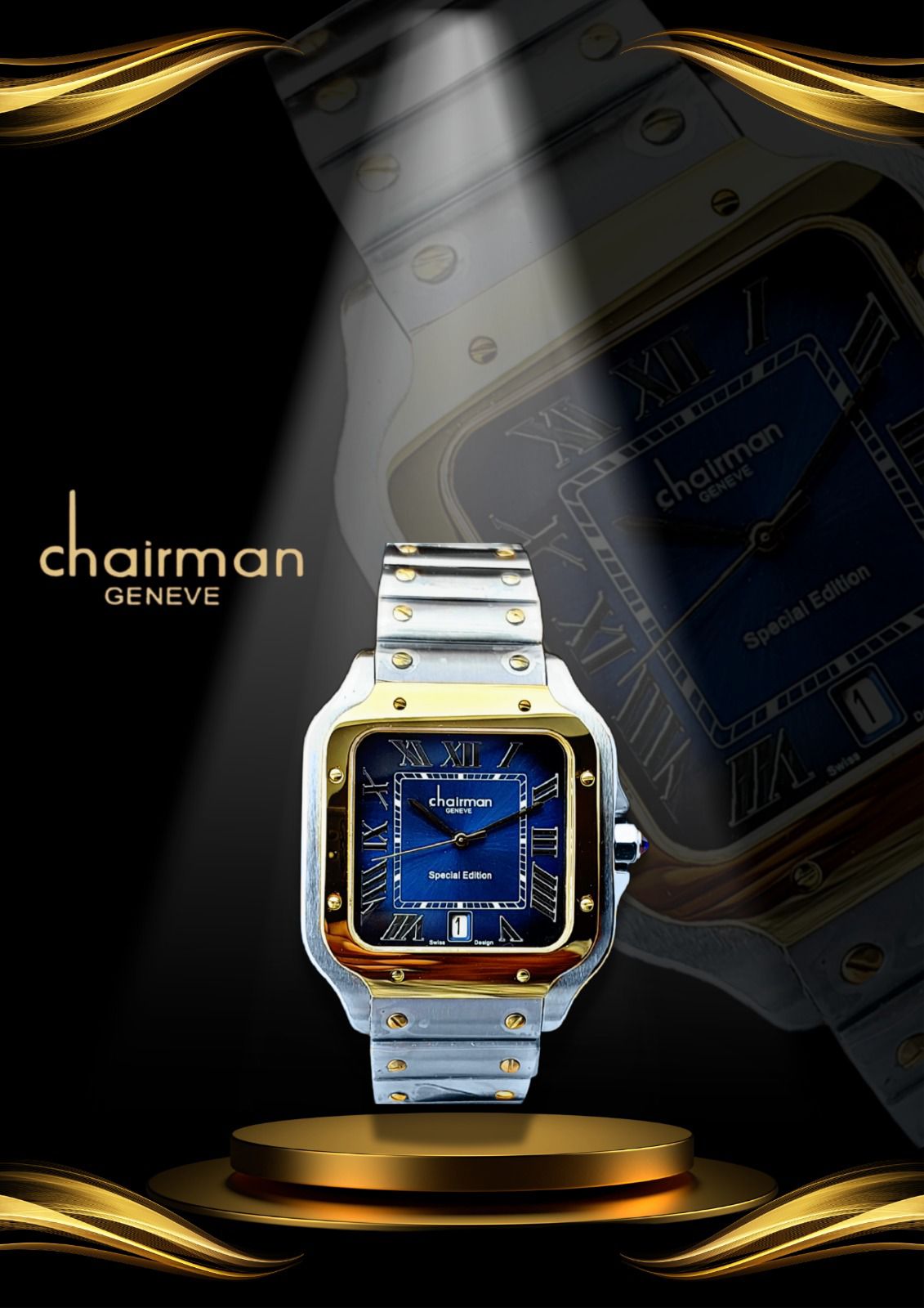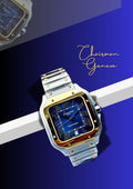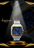 Rectangle Blue Dial Chairman Geneve Silver Gold Starp Watch