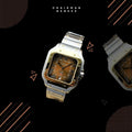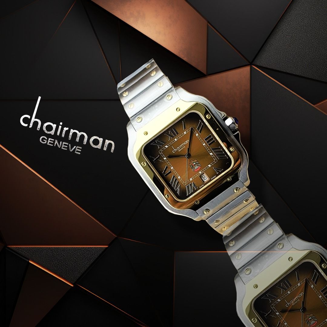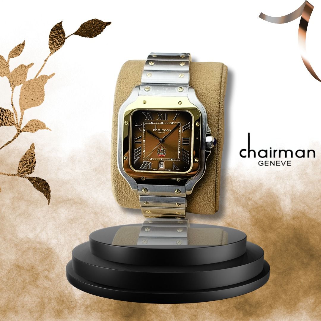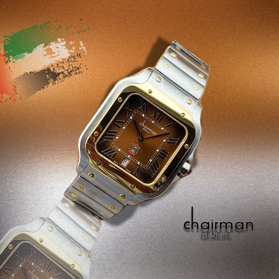 Add a touch of luxury to your timekeeping with our Rectangle Coffee Dial Chairman Geneve Silver Gold Strap Watch. Featuring an elegant design and adorned with the ABU DHABI Flag, this watch is the perfect statement piece for any occasion.