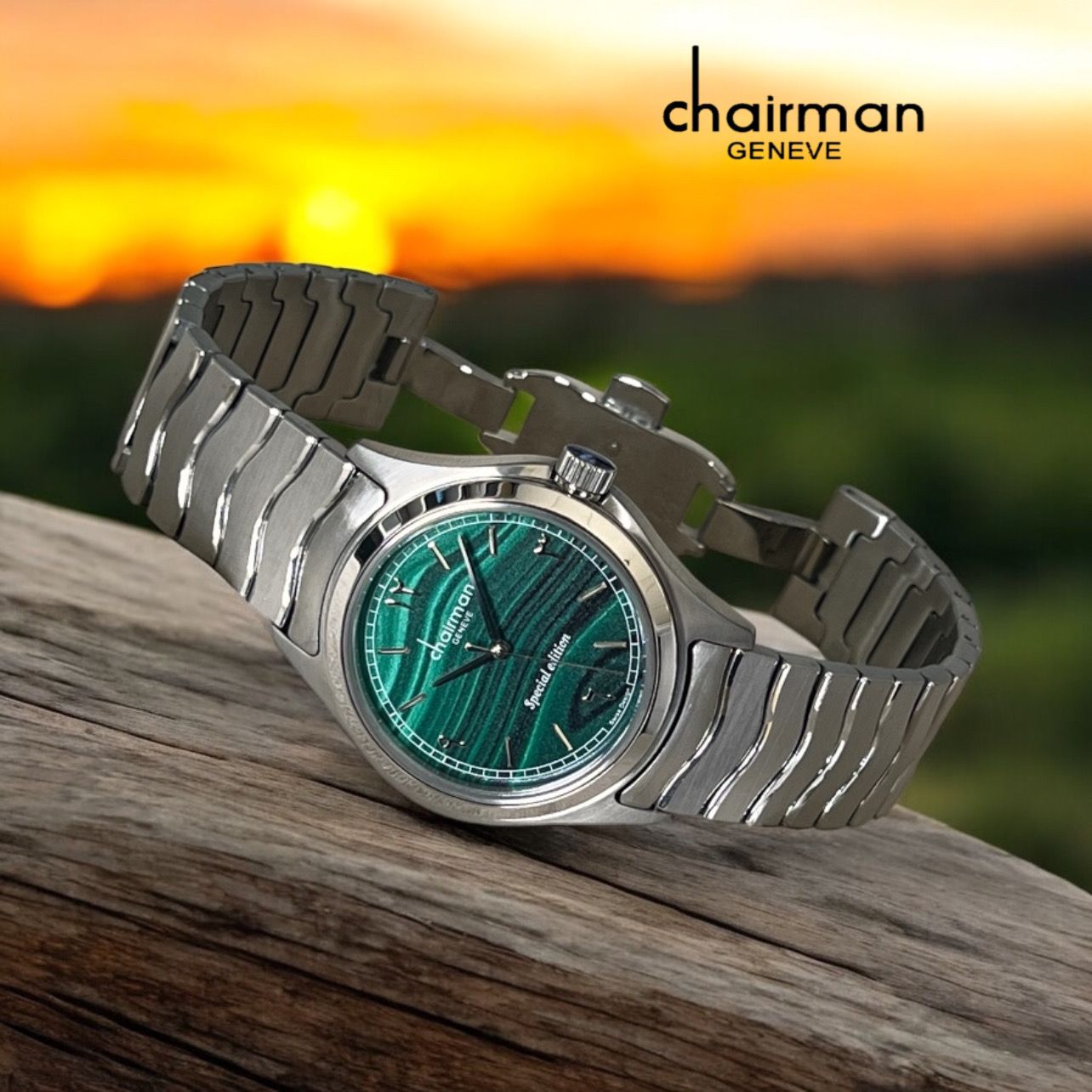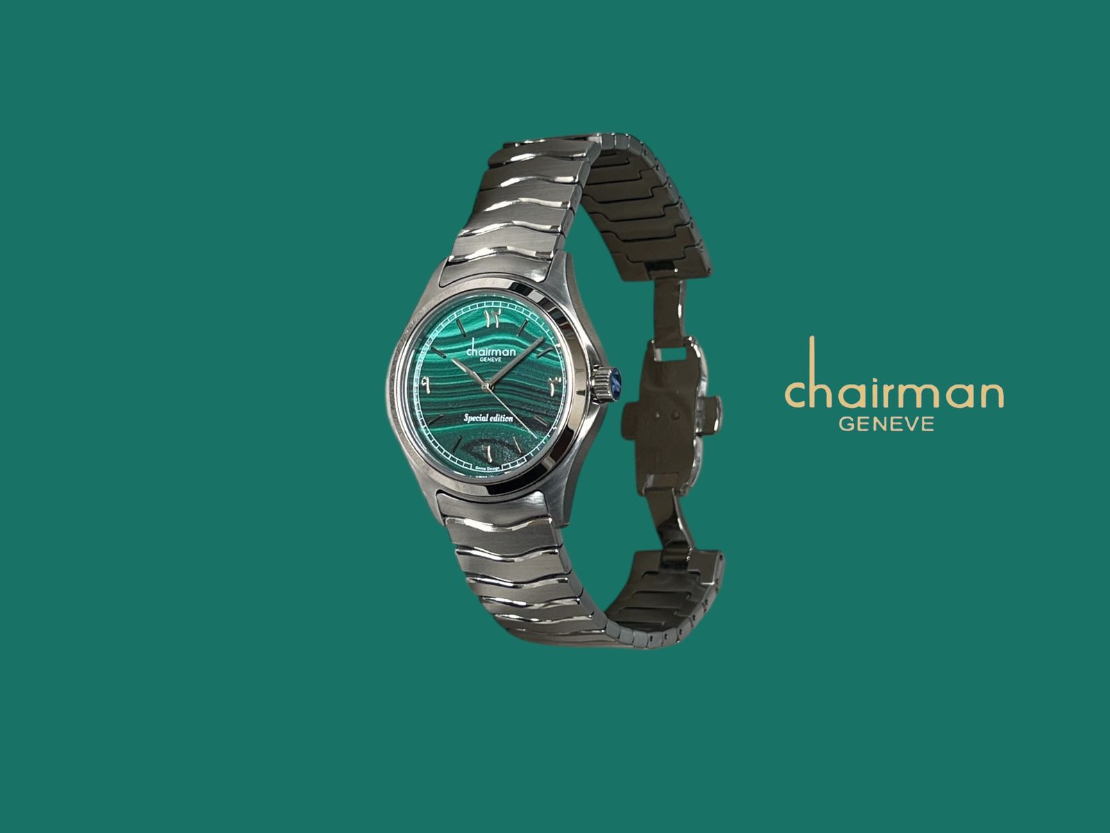 Elevate your style with this exclusive Special Edition Chairman Geneve timepiece. Featuring a mesmerizing Arabic green wave dial that captures attention, complemented by a luxurious silver chain bracelet. This distinguished gents watch combines Swiss-inspired craftsmanship with Arabian elegance, making it the perfect statement accessory for discerning gentlemen who appreciate sophisticated design and exceptional quality.