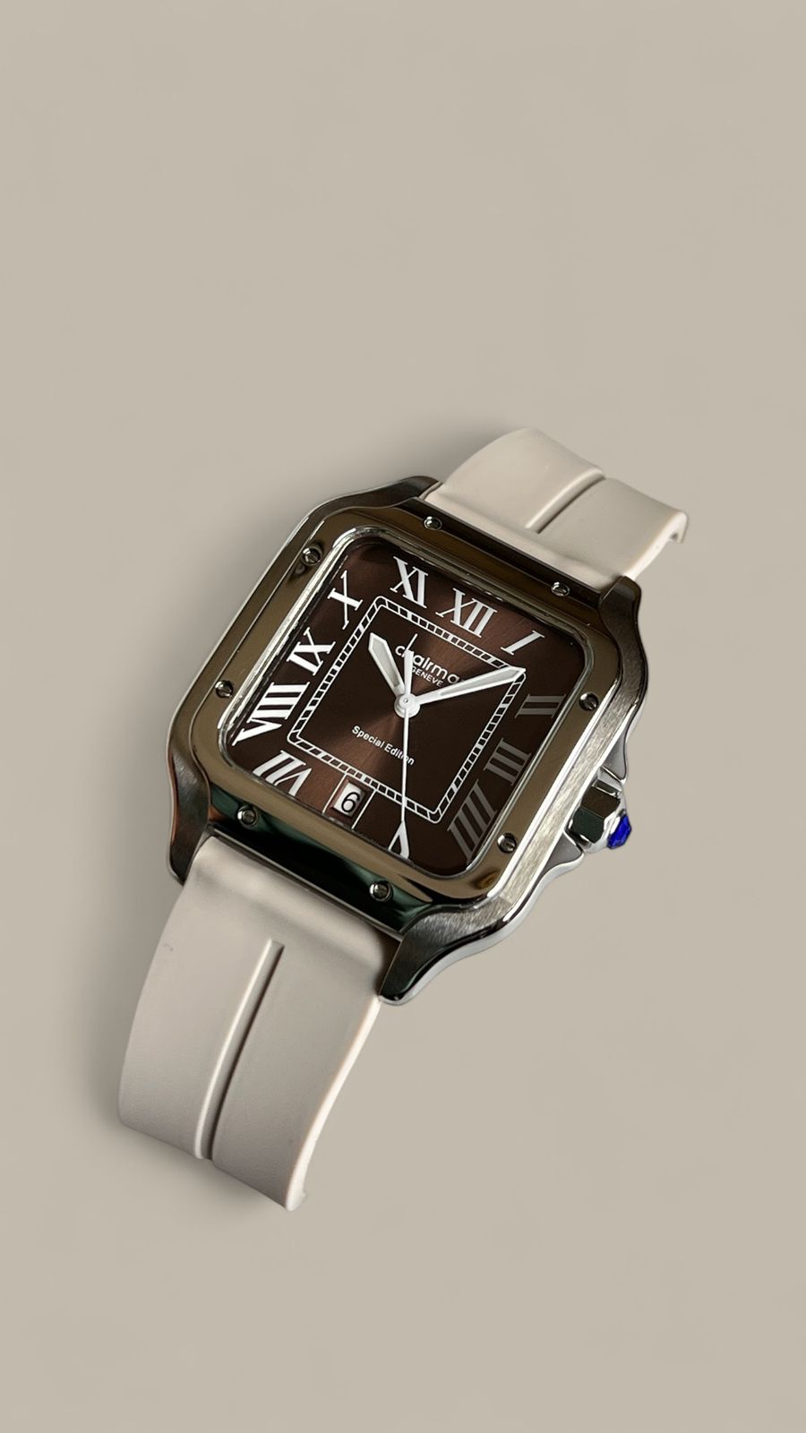 Elevate your style with the Special Edition Chairman Geneve Gents Watch, featuring a sophisticated brown Roman dial and a beige strap. This timeless timepiece combines classic design with modern elegance, perfect for the discerning gentleman. Its dated dial adds practical functionality, making it an ideal accessory for both formal and casual occasions. Experience refined craftsmanship and understated luxury on your wrist.