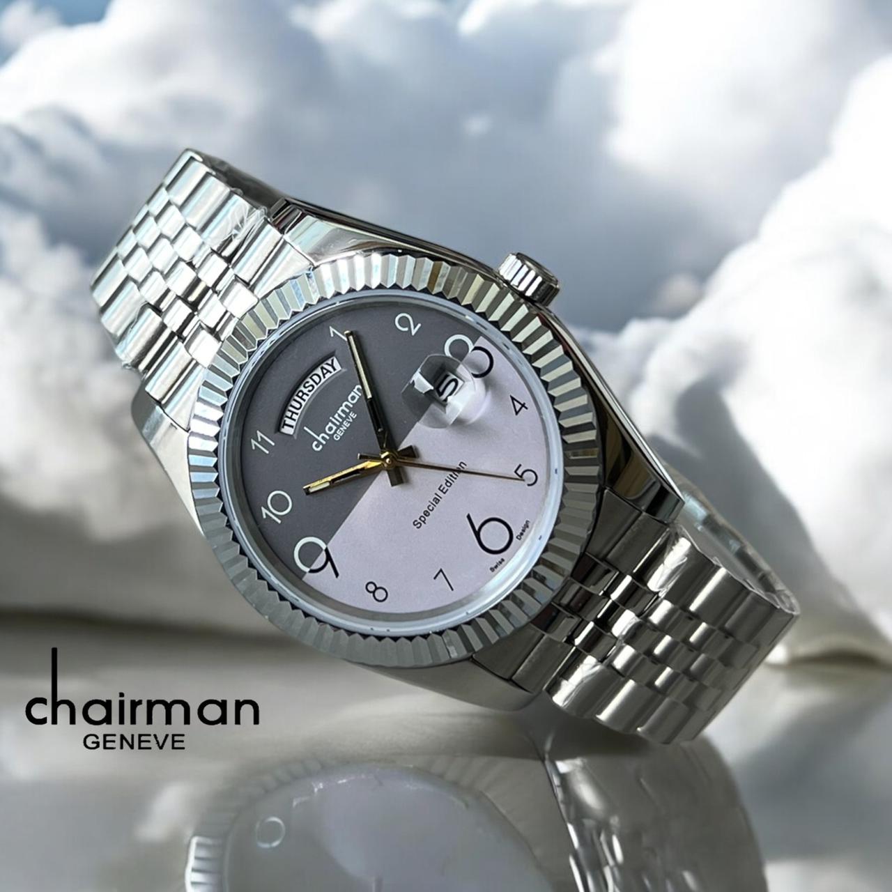 Introducing the Special Edition Chairman Geneve Silver Strap Grey Dial Men's Watch. This sleek watch features a stylish grey dial and a polished silver strap, perfect for elevating any outfit. Limited edition design for a unique and luxurious touch. FREE DELIVERY CASH ON DELIVERY ALL OVER UAE