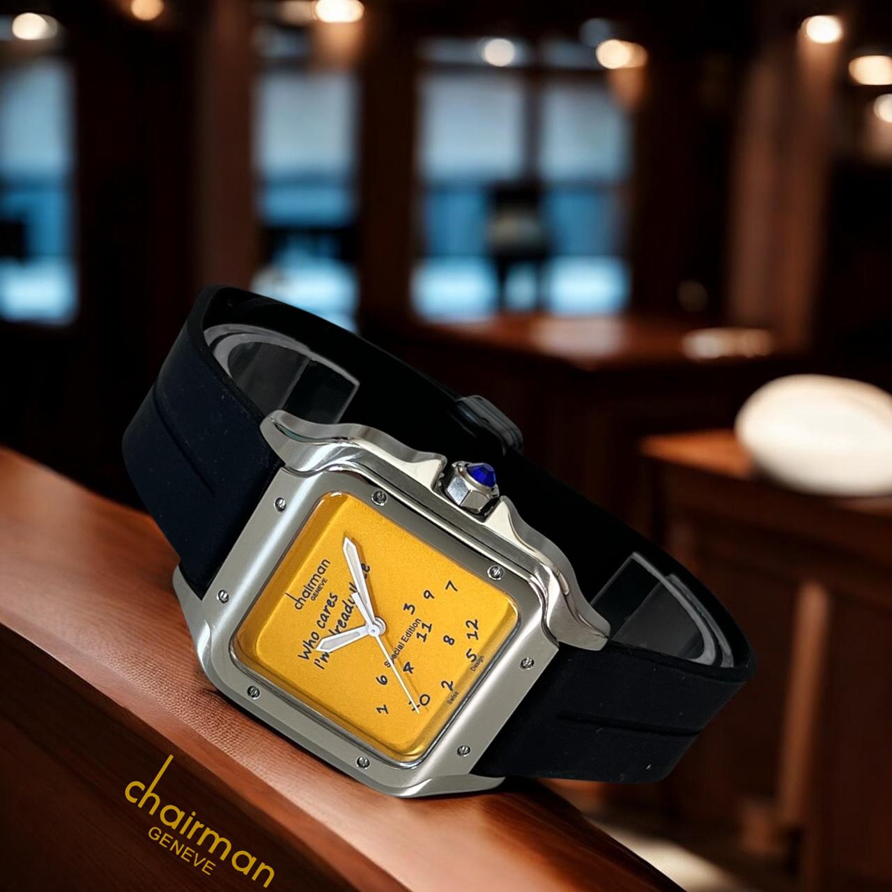 Elevate your style with the Special Edition Chairman Geneve watch, featuring a striking yellow dial contrasted by a sleek black strap. Designed for gentlemen who appreciate bold elegance, this timepiece combines vibrant color with classic sophistication. Its precise craftsmanship ensures reliable performance, making it the perfect accessory for both formal occasions and everyday wear. Stand out confidently with a watch that defines distinction and modern luxury.