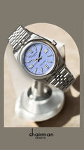 Upgrade your style with our Superlative Chronometer Blue Dial Silver Chain Chairman Geneve Gents Watch. With precise timekeeping and a sleek silver chain design, this watch will elevate your wrist game. Show off your impeccable taste with every glance at the striking blue dial.