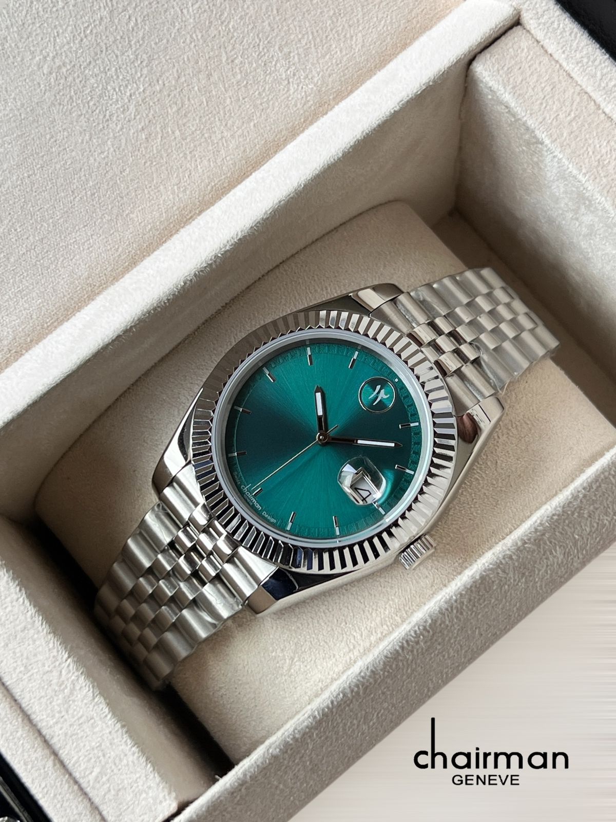 Swiss Chairman Design Dated Green Dial Silver Chain Gents Watch