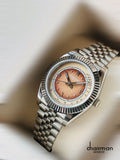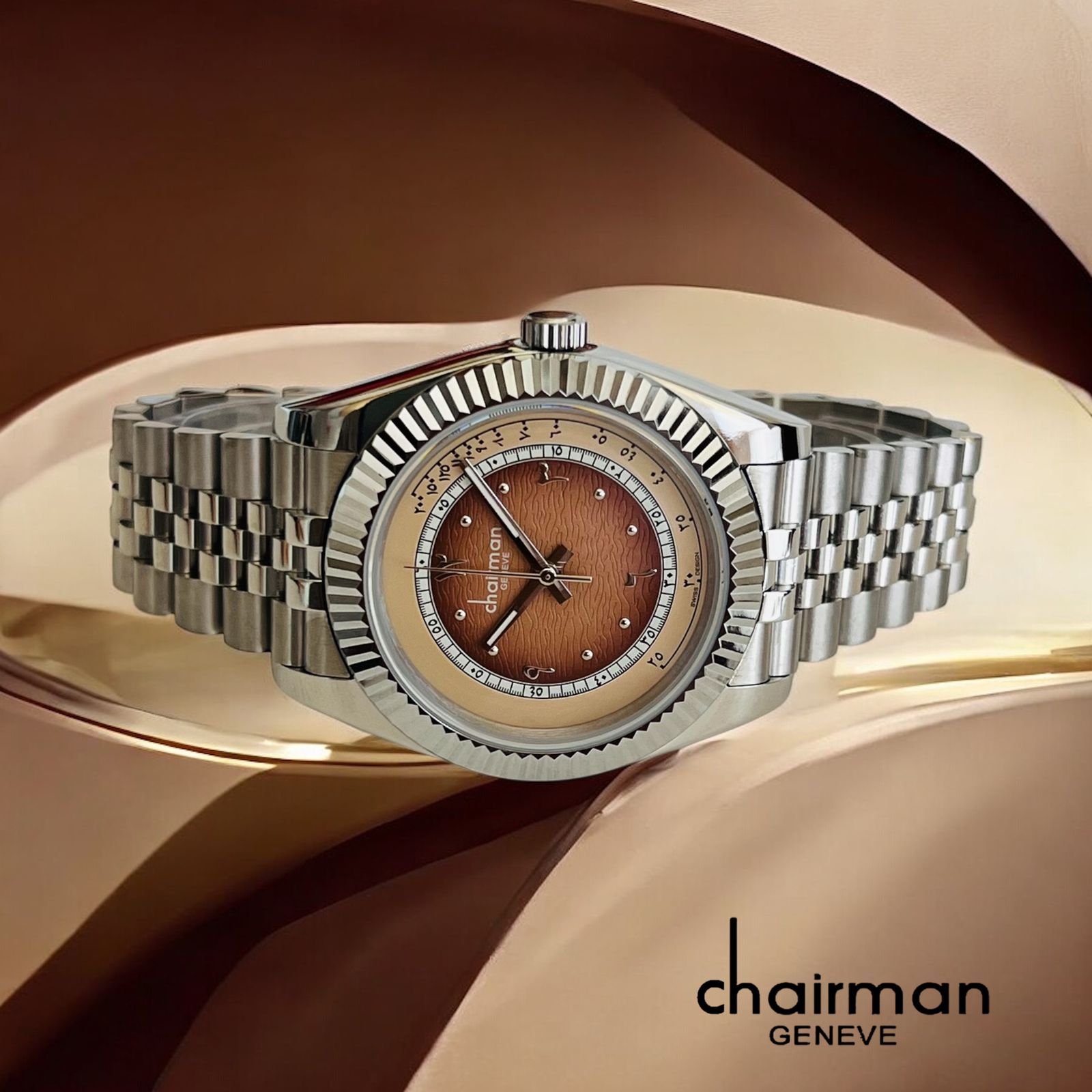 Elevate your wrist with the Swiss Design Chairman Geneve, a sophisticated timepiece that seamlessly blends heritage craftsmanship with contemporary elegance. Featuring an Arabic numeral brown dial that exudes warmth and refinement, this gents watch is anchored by a gleaming silver chain bracelet that catches the light with every movement. Precision-engineered with Swiss design excellence, it's the perfect accessory for the discerning gentleman who values both style and substance. Make a statement that speaks volumes about your taste.
