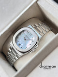 Swiss Design Chairman Geneve Arabic Dated White Dial Silver Chain Gents Watch