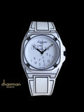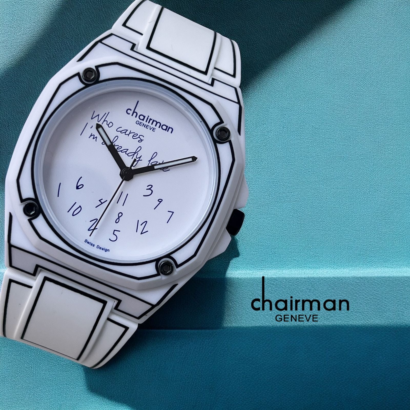 Experience timeless elegance with the Swiss Design Chairman Geneve watch. Featuring bold black numerals on a crisp white dial, this gents' timepiece combines style and clarity. Crafted with durable polycarbonate, it offers lightweight comfort without compromising strength. Perfect for everyday wear or special occasions, this watch adds a sophisticated touch to any outfit.