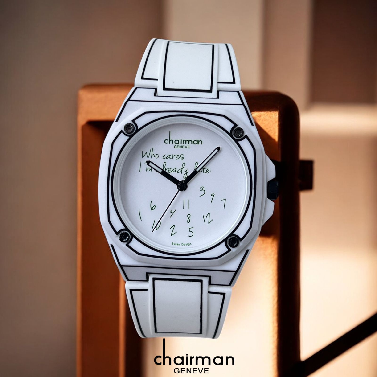 Experience timeless elegance with the Swiss Design Chairman Geneve watch. Featuring a crisp white polycarbonate case and striking green numerals, this men's timepiece combines modern style with classic Swiss craftsmanship. Its lightweight design ensures comfortable wear throughout the day, making it the perfect accessory for both casual and formal occasions. Elevate your wristwear with a watch that stands out for its unique color contrast and reliable quality.